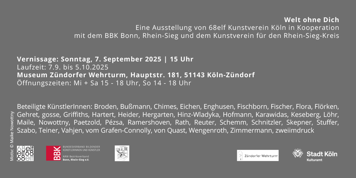 Eine Ausstellung von 68elf Kunstverein Köln in Kooperation mit dem BBK Bonn, Rhein-Sieg und dem Kunstverein für den Rhein-Sieg-Kreis.